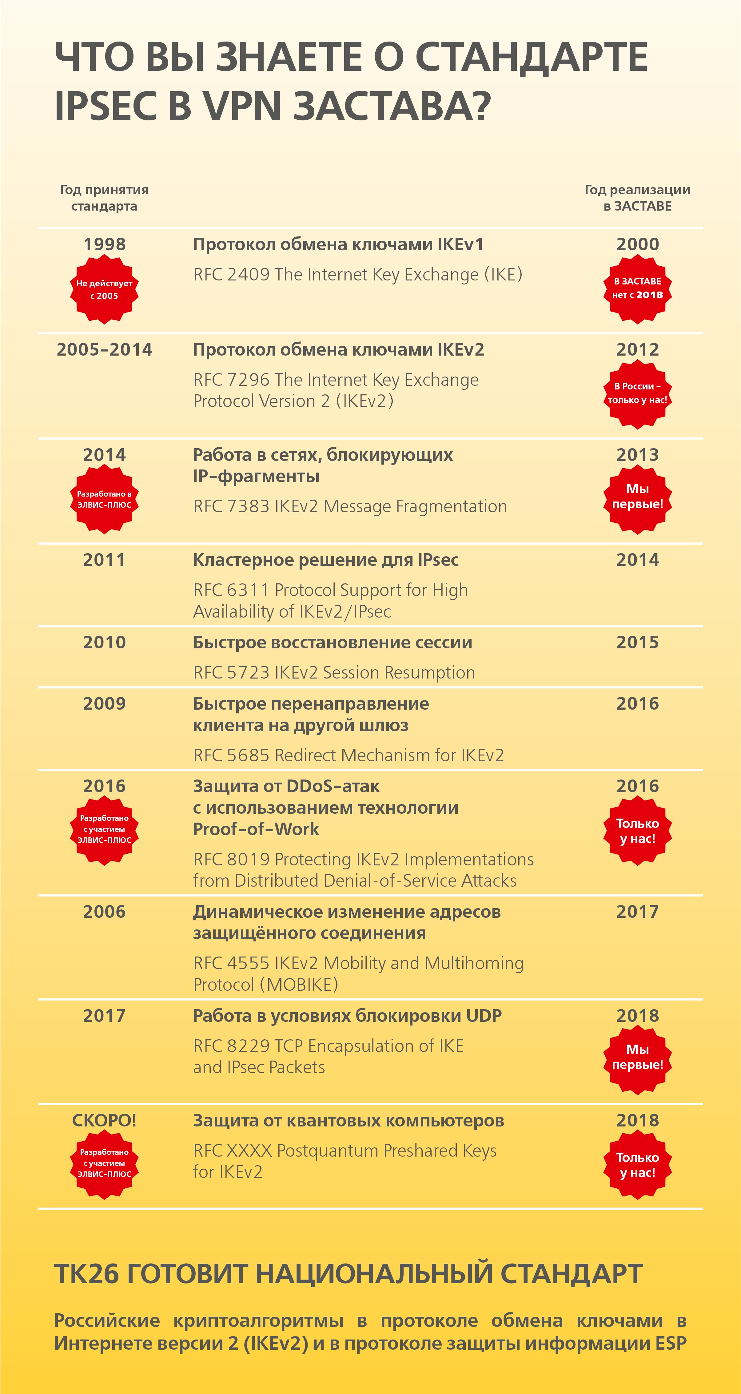 - Использование наряду с российскими криптоалгоритмами международных стандартов и протоколов сетевой защиты IPsec и IKEv2